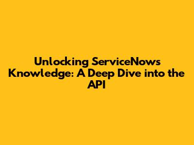 Unlocking ServiceNow's Knowledge: A Deep Dive Into The API