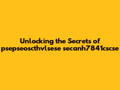 Unlocking The Secrets Of Psepseoscthvlsese Secanh7841cscse