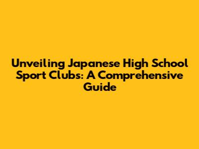 Unveiling Japanese High School Sport Clubs: A Comprehensive Guide