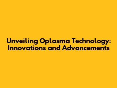 Unveiling Oplasma Technology: Innovations And Advancements