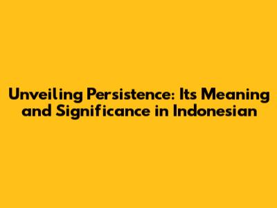 Unveiling Persistence: Its Meaning And Significance In Indonesian
