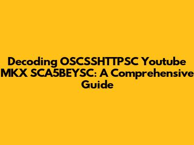 Decoding OSCSSHTTPSC Youtube MKX SCA5BEYSC: A Comprehensive Guide