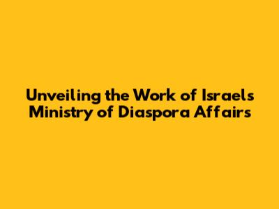 Unveiling The Work Of Israel's Ministry Of Diaspora Affairs