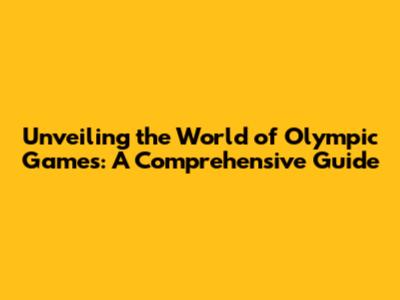 Unveiling The World Of Olympic Games: A Comprehensive Guide