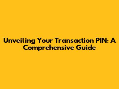 Unveiling Your Transaction PIN: A Comprehensive Guide