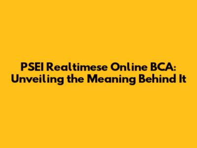 What Is PSEI Realtimese Online BCA?