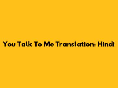 You Talk To Me: Hindi Translation And Usage